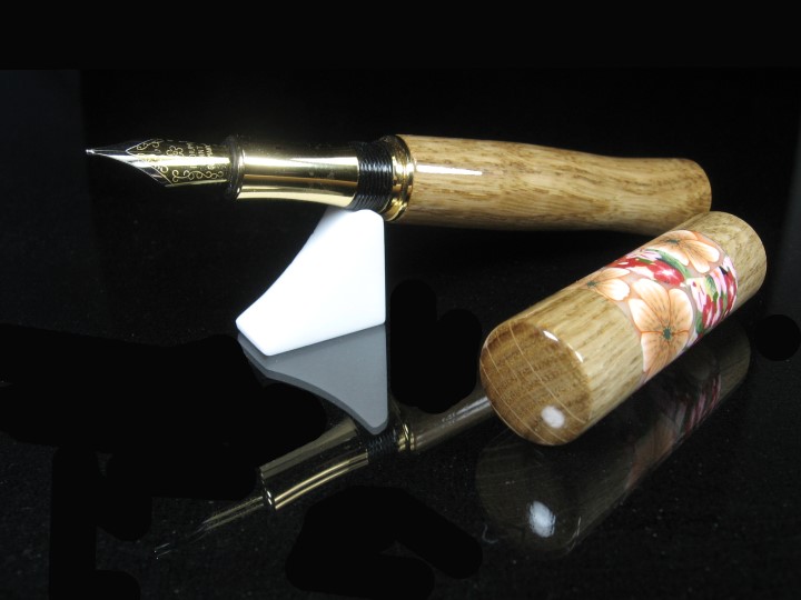 Oak wood Orange/Red polymer clay flowers fountain pen :beauty::bananen_smilies027::RockOn::bananen_smilies051: