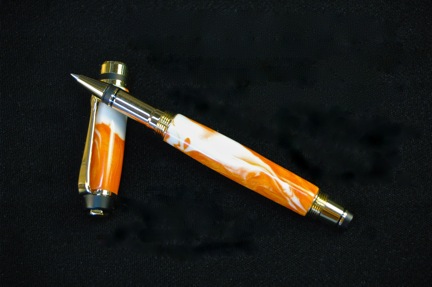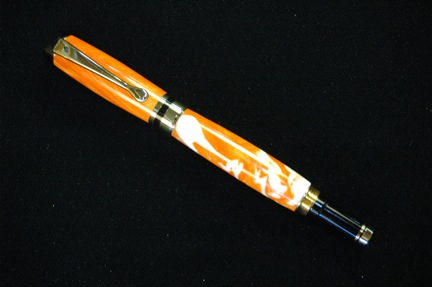 I had Brooks803 make some custom Orange and White blanks for some UT Vol fans. I got to turn the first one tonight... and boy was it fun :tongue: These blanks were sending up ribbons of acrylic high into the air...looked like a mosquito had hit the artery of a Tenn Vol fan:biggrin: