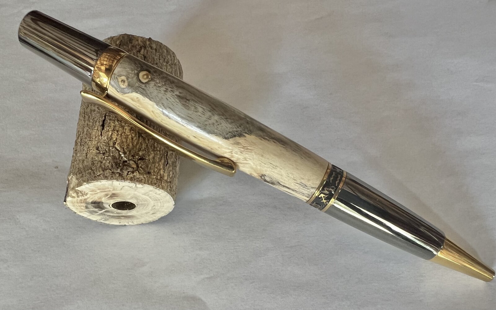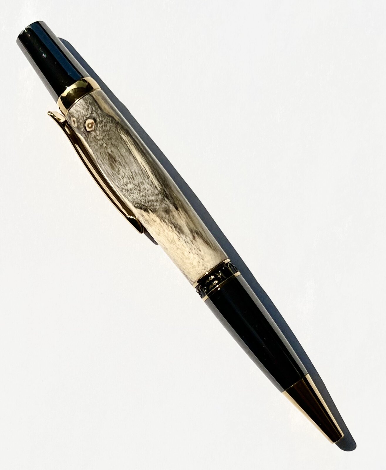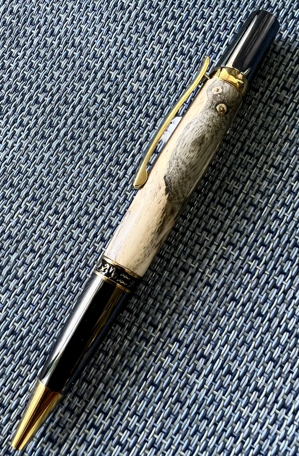 I turned this one today & put it on a Zodiac pen kit. The spalting pattern kinda looks like an owl.
