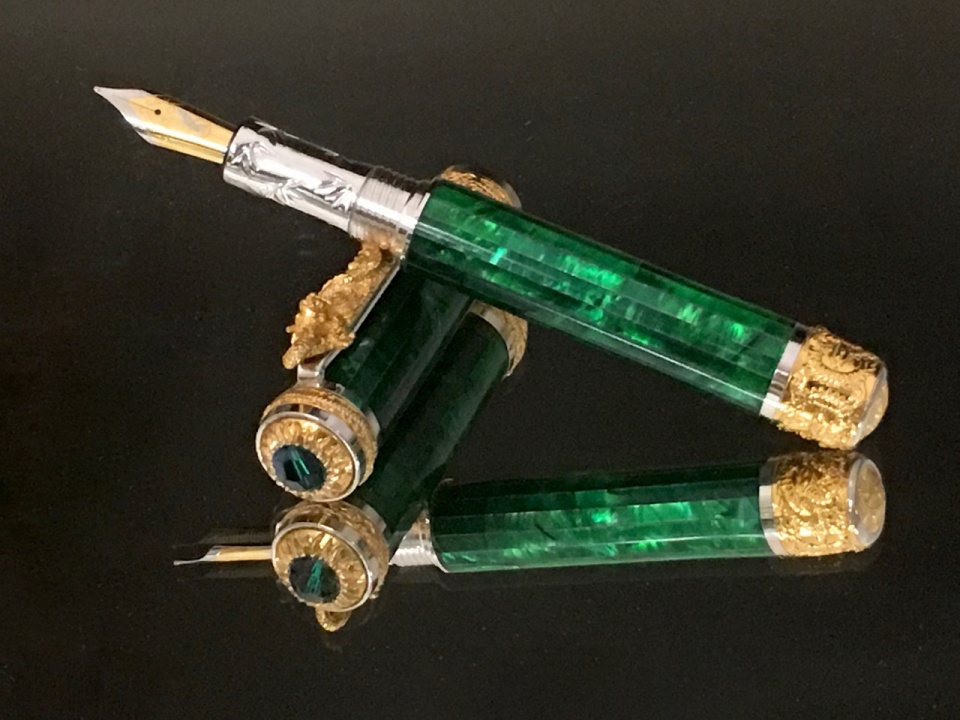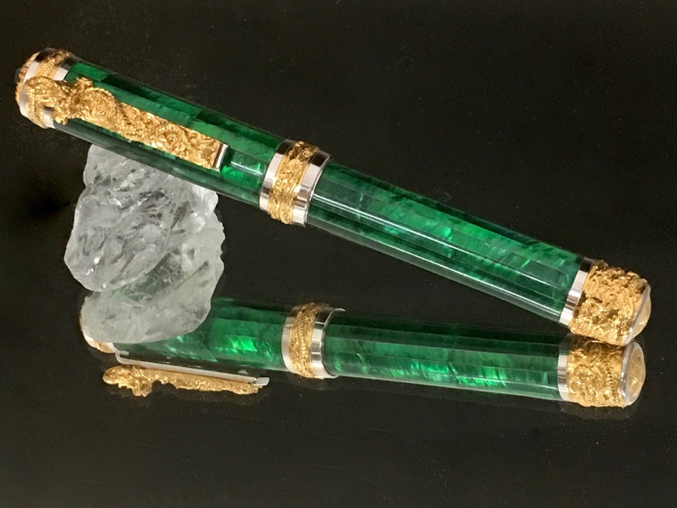 I have a good customer that wanted an Oriental Dragon in gold, with dark green abalone. After some help from IAP members, I found the kit and ordered the green abalone blank from Signature Pen Supply.