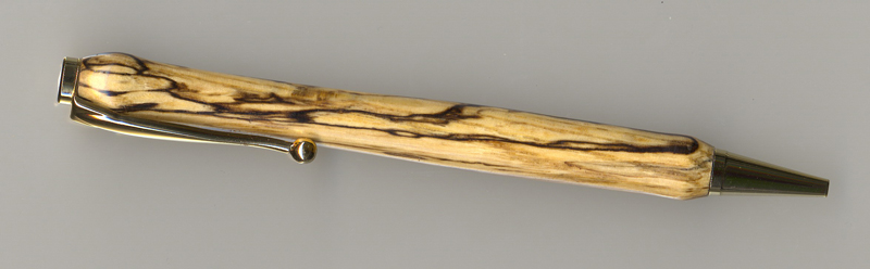 Tried another on today in some burl from Rockler. The tag on the block neglected to say what KIND of burl, but it looks pretty nice. Had a blowout at the top of the pen but I found the chunk and glued it back. You can see the patch in the picture. It was odd, when I looked at the break there was glue on the tube and on the inside of the blowout so it was surprising that it let go.