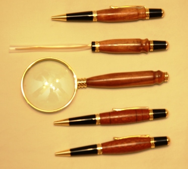 With so many pros and excellent pen turners, I have felt intimidated to show off our pens; but, here are my wife's and my first pens, these are from a WC penturners class and a Wall Street II in Lacewood. And for her birthday, we made a WS II set in native Texas pecan.