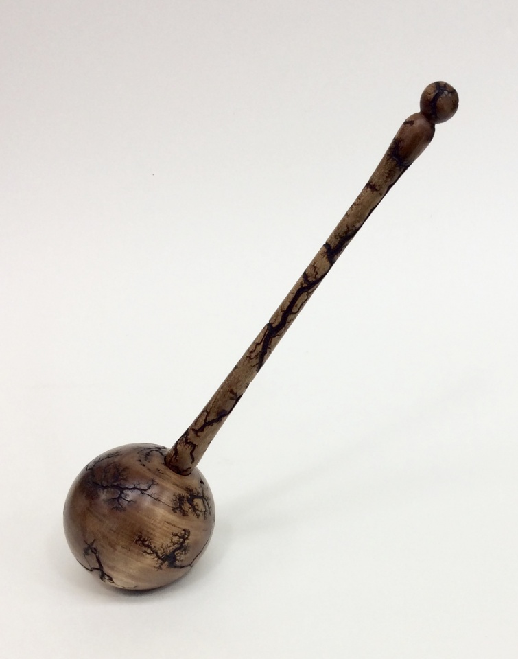 The base and pen are cherry with a black ebonite nib. The surface embellishment you see is Lichtenberg Fractal figuring which is done with high voltage, couple of electrodes and water!