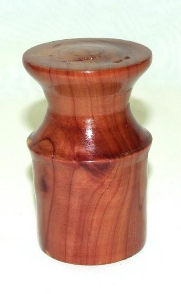 Made from Katalox, (Mexican Royal Ebony) this wood finishes like a dream, very dense.A nice option for a stopper of you want the bottle to fit back in the fridge....