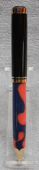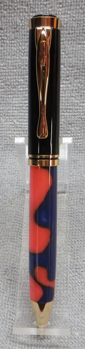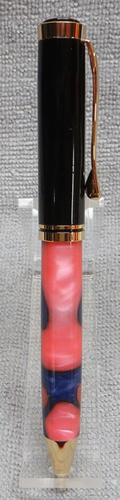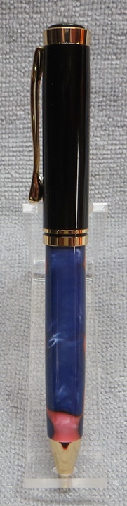 This is my eighth Oxford ballpoint pen, with an Aquabright Pink and Blue Swirl blank, both from PSI. I like the Oxford pens, they're inexpensive, easy to turn requiring only one body (the upper body is pre-made), and look very nice. I've made several of these for the girls at work, and we hired a new one a couple of weeks ago. I'm sure Sonia will like it as much as the other girls like theirs.
