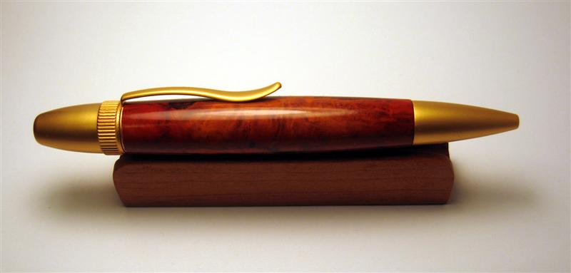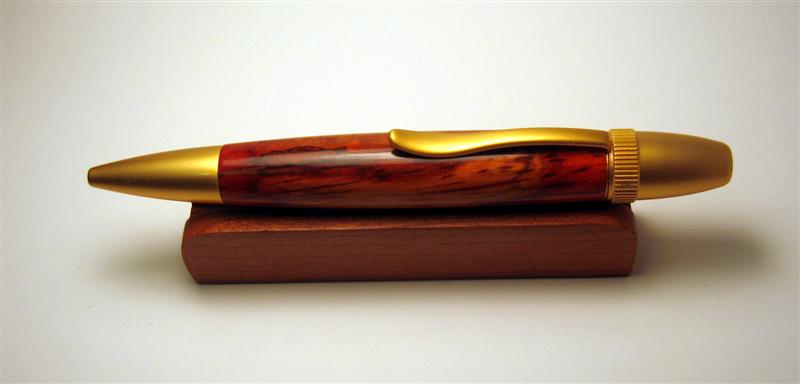 I bought a few board feet of paduk the other day that had a nicely figured section right next to a large split..I filled the split with epoxy tinted with copper colored pearl-x pigment. Here is the final result..The third pic is Caribbean Rosewood with sapwood..I love caribbean rosewood but must be alergic to it..been sneezing all night (happens every time I turn it)