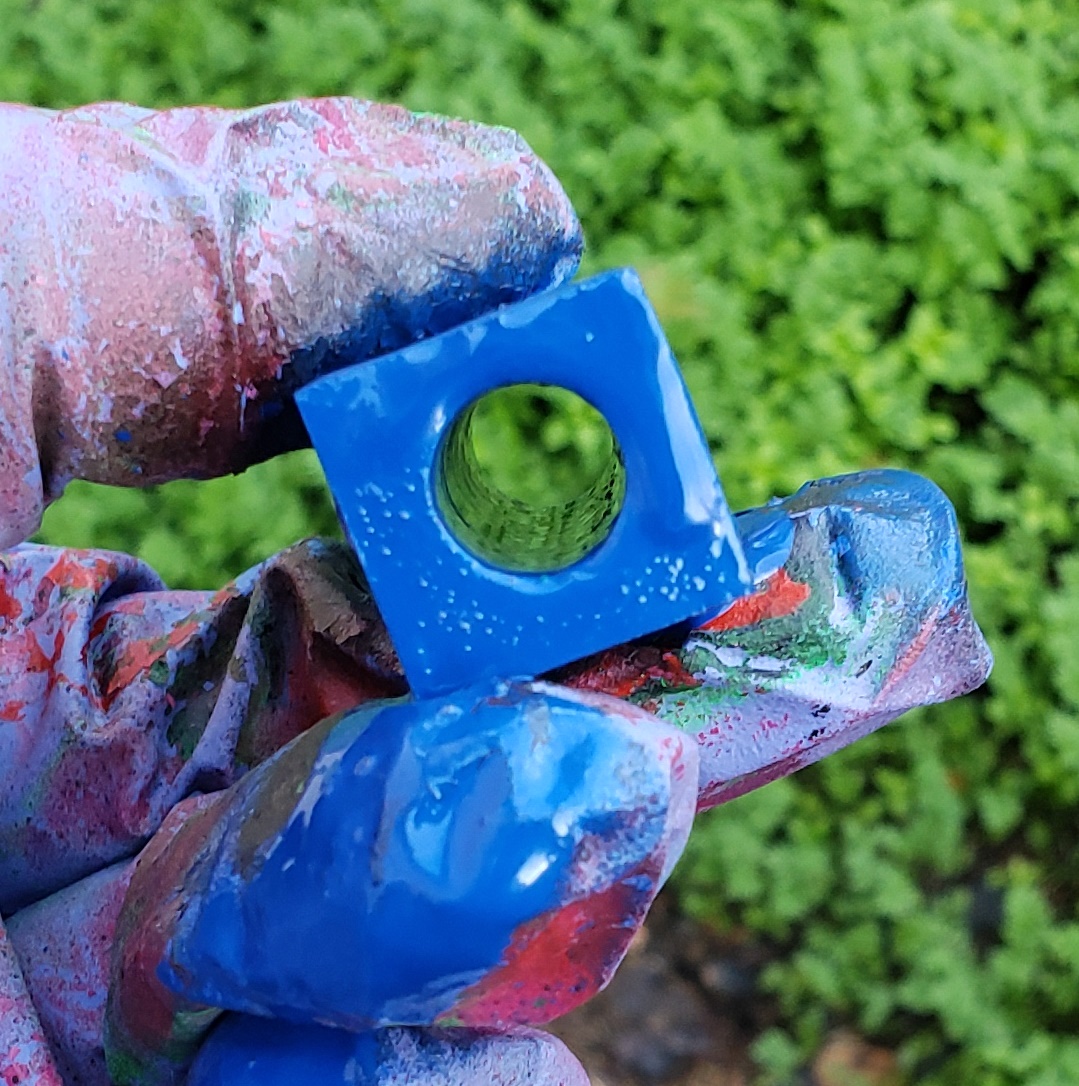I would like to paint my brass tubes so that they don't show through resin blanks. I use CA glue to bond the brass to the resin blank.
