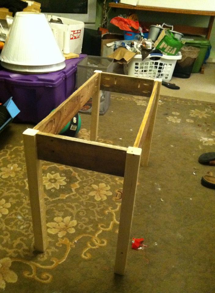 My wife bought a sectional sofa. She wanted an end table to go on the left side.. We couldn't find one to fit the gap.. I did some looking on the internet to pallet tables. I already had the kreg jig left over from another project. I got to cut the top this weekend and stain it. All I purchased was a 2x2 for the legs, some kreg screws and a 1x12x4 for the top.