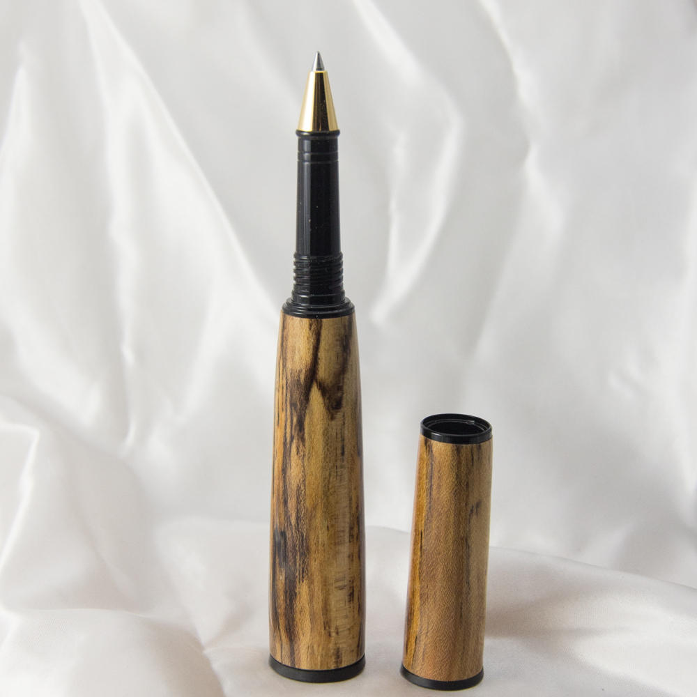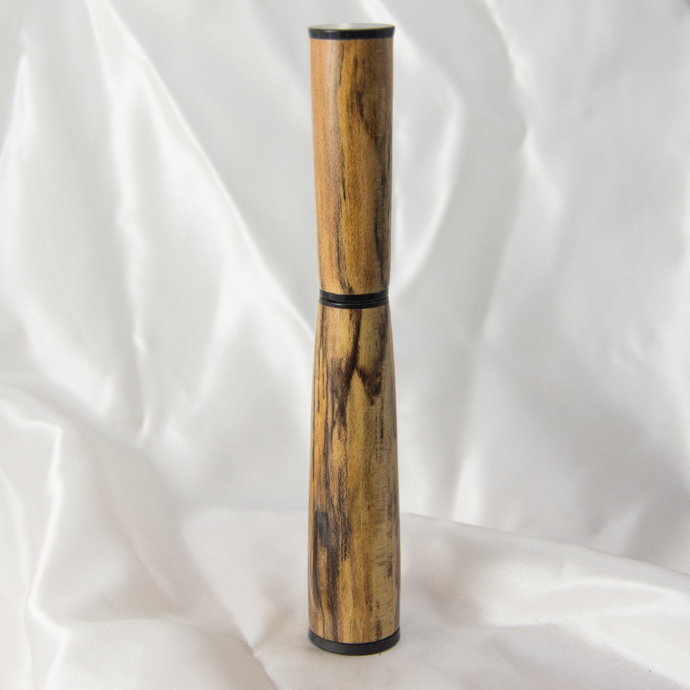 I finished this Panache today. Had to look hard to find a blank big enough. I thought the spalt line on the stabilized Sugar Maple blank would work well with the shape and length. Unfortunately a good part of the spalting on the upper blank got turned off. I have one more high School Gym show this year and am hoping it will draw some attention and start up conversation. C&C always welcome. Thanks for looking.