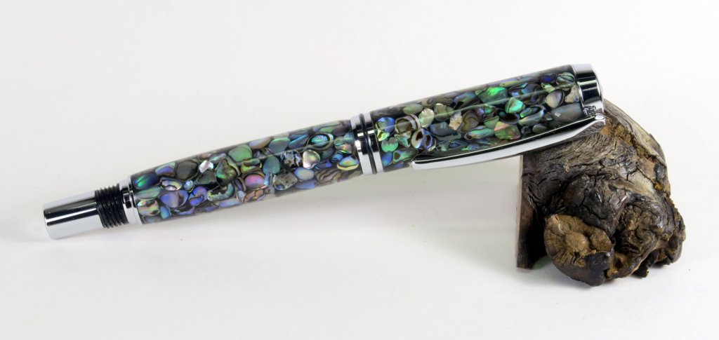 Nice pen Peter. Thanks for sharing. I actually came across a container of those fragments a few days ago. I think your pen has inspired me to do something with them...as soon as our 105 degree days ease up. We have had 45 100+ days so far this summer. (38+ for those that measure temps in Celsius). Although, the resin is thin on these days but the curing is speeded up.
