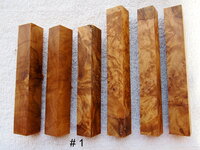 It has been awhile , but here are 12 lots of my best blanks in stock. More Indian Rosewood (Dalbergia sissoo ) blanks are available . I can cut more of those beauties if there is the interest. Also, Wild Almond Burl is new for me and I probably can provide 3 lots. Thanks for looking . All wood is kiln/air dry and measures 3/4 - 7/8 " square by 5 " long except two of the Almond Burl which are 6 " long . The Desert Ironwood is the same as in the 1st prize wining pen shown on the cover. Shipping is $8 for up to 3 lots.