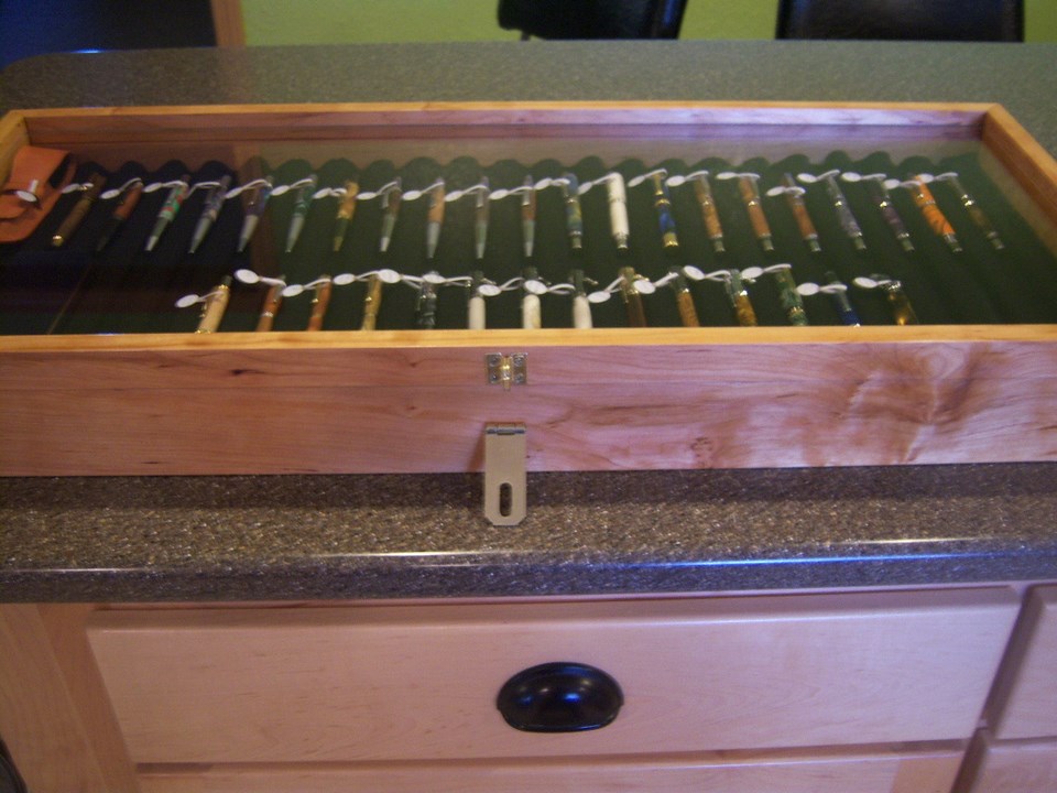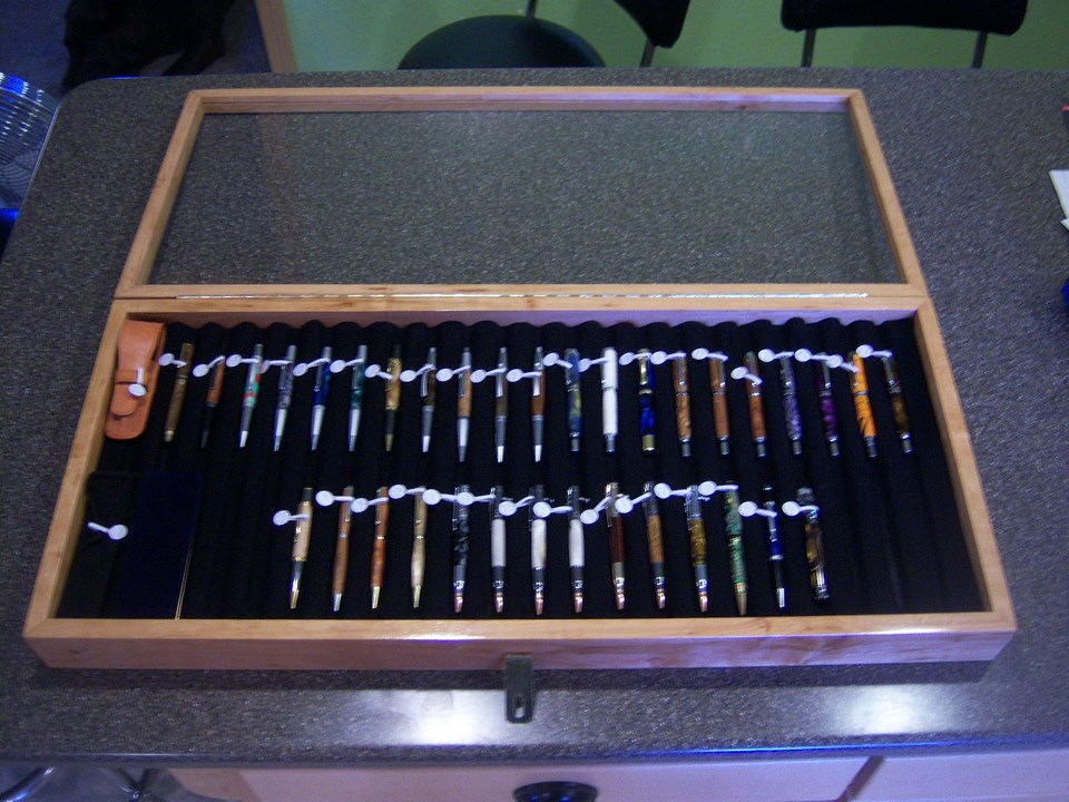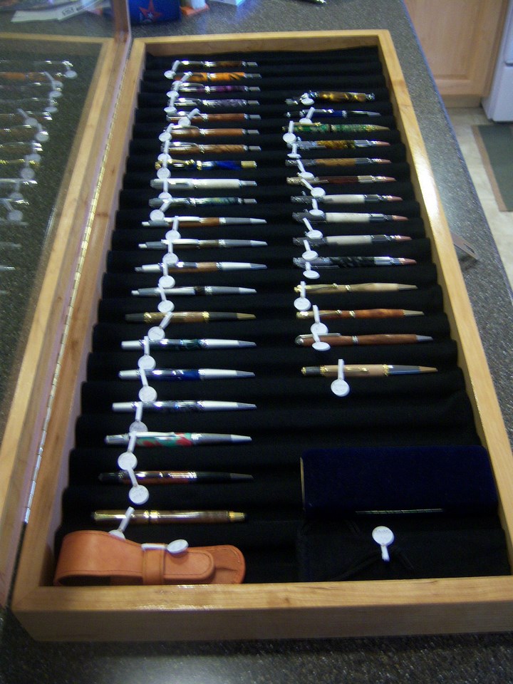 Was asked by our local shops if I'd like to put a display of my works for sale. She asked me if I could make a display box that was secure since pens and such would be easy to make disappear