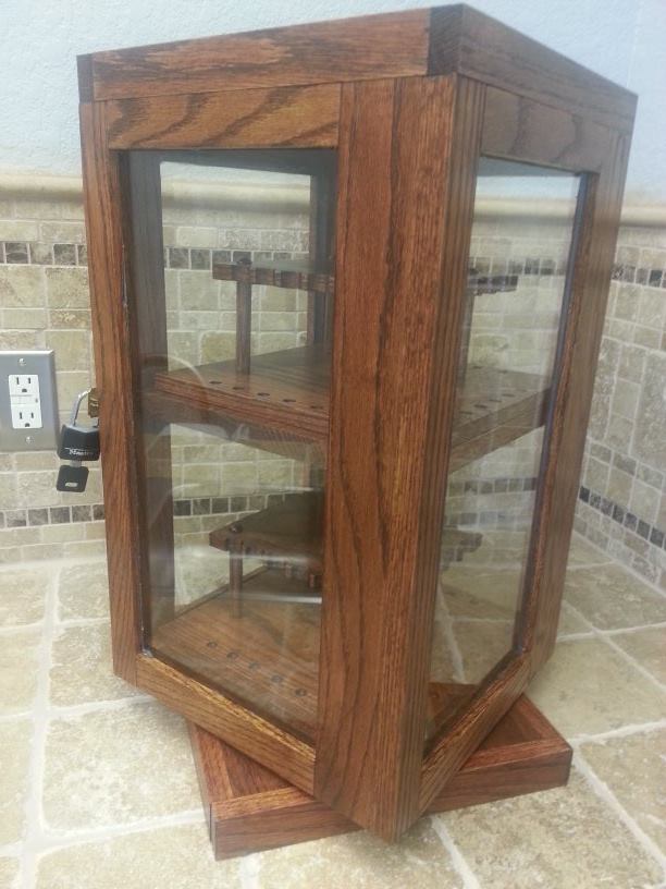 That looks amazing! What made you choose to make the displays inside hold pens on 3 sides instead of all 4? Were you originally going to make this a stationary (non-rotating) display?