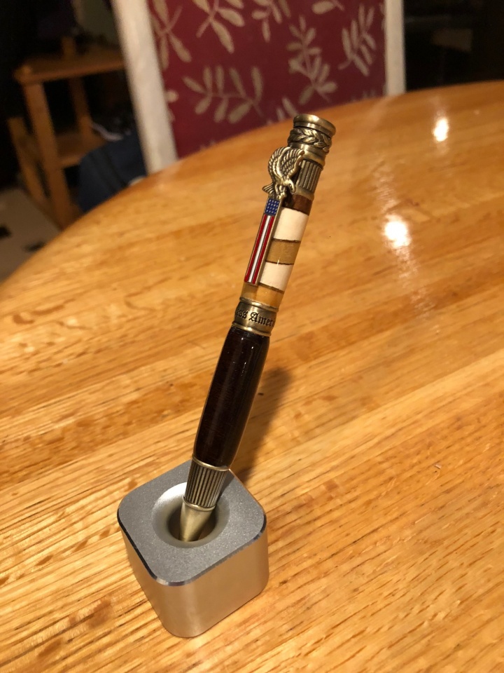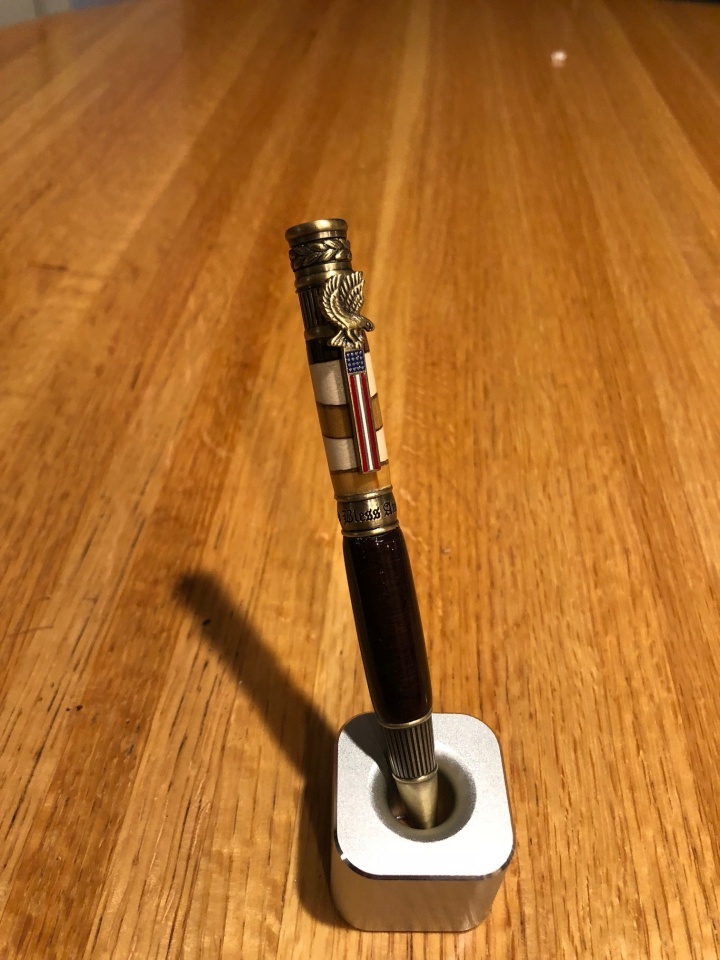 One of my good friends deployed to the Middle East last week. I am really happy with how it turned out. This is only the third pen I have made.