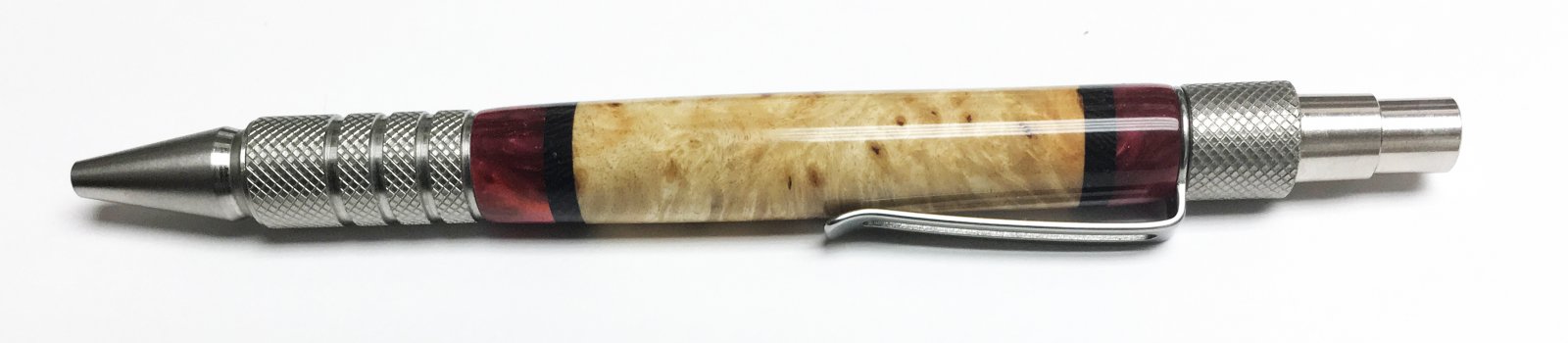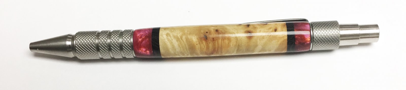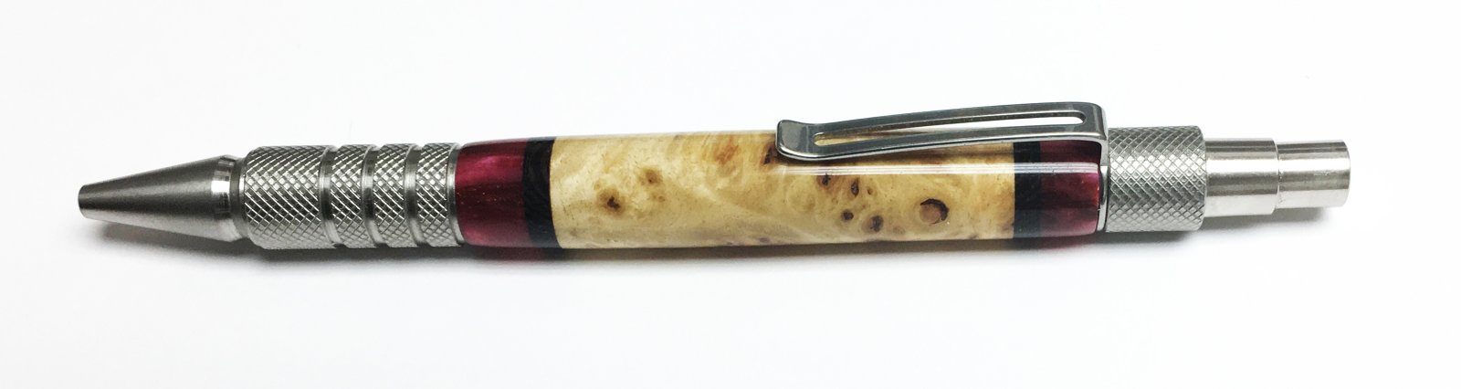 A pen from my backyard. I have been watching this burl at the base of a Box Elder tree for several years. Last summer I cut it out. I cut some of it into 1"X 1" X 6" pen blanks. Good thing I did – as it dried it warped quit a bit. This is one of the pens I made from the wood this spring.