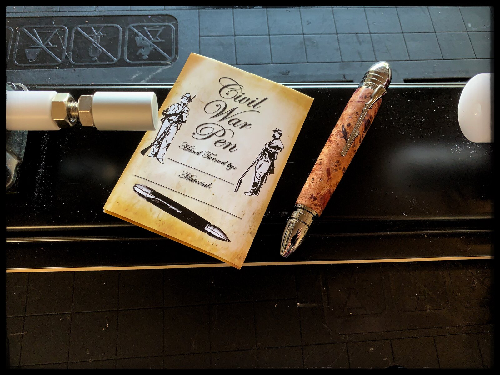 The burl looks great, nice work. I really like the Civil war pen, did one for my brother, it is surprisingly comfortable to write with for a large pen.