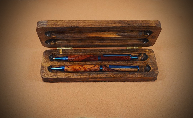 Haven't turned in a while. Decided to try out a Pen & Pencil set that I bought in bulk a while back. Pretty sure it was a Berea Woods kit. Never did them before. After I got done, decided to make a cheap box out of a scrap piece of pine board I had. Did a little laser engraving on top of the box. After I engraved it with my US Army logo, I then wished the sets would have been green. Lol Anyway, here they are.