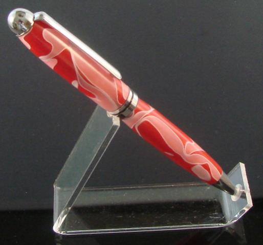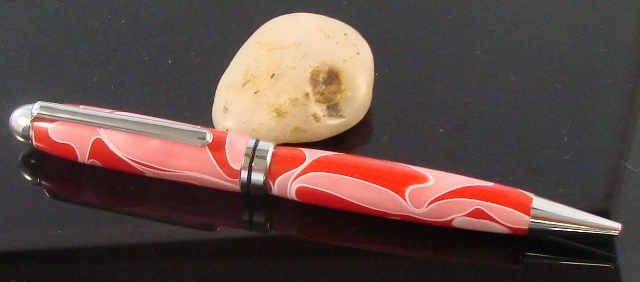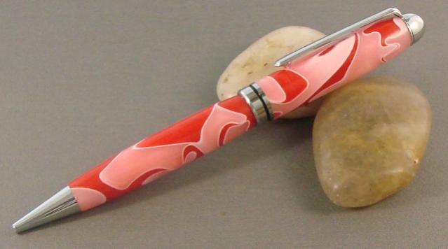 I have a friend at work that told me the other day she would never buy a pen from me because I don't make pink pens. She should never have said that. I have been known to shy away from frilly colors and usually let my wife do those turns. I happened to find a blank that I picked up in a group buy from wood pen pro called "bikini". I had originally purchased the blank to eventually make another pen for my granddaughter. My friend said she liked the Euro, so I put the two together and this is what I got. When I showed her the pen at the coffee table before work with all the other ladies from the office there. They went bonkers. I sold her the pen and got orders for three more with their names engraved. One other order in a different color. I guess I need to turn more frilly pens.:biggrin::biggrin::biggrin: