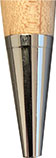 Meets nib organically and increases the pen thickness gradually by mimicking and extending the nib slope.
