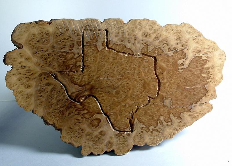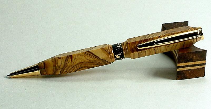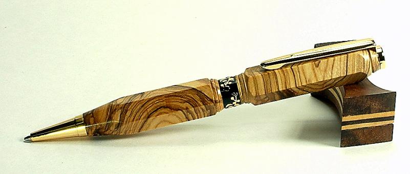 Using a mini rotary tool the Outline of Texas on the Brown Mallee Pen Rest, the Pen cross cut Spanish Olive bought in France from Pat Murris.