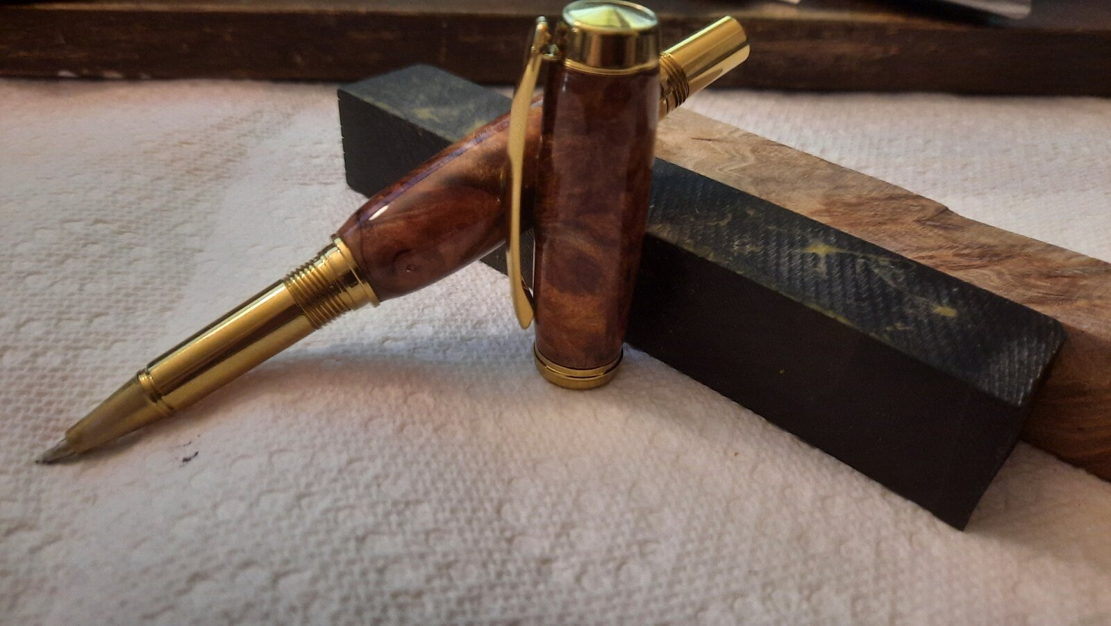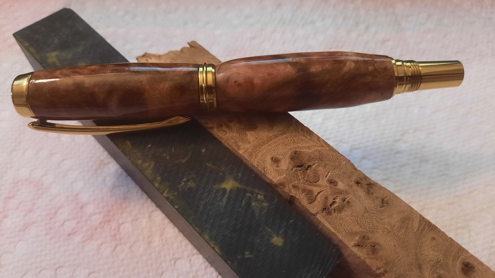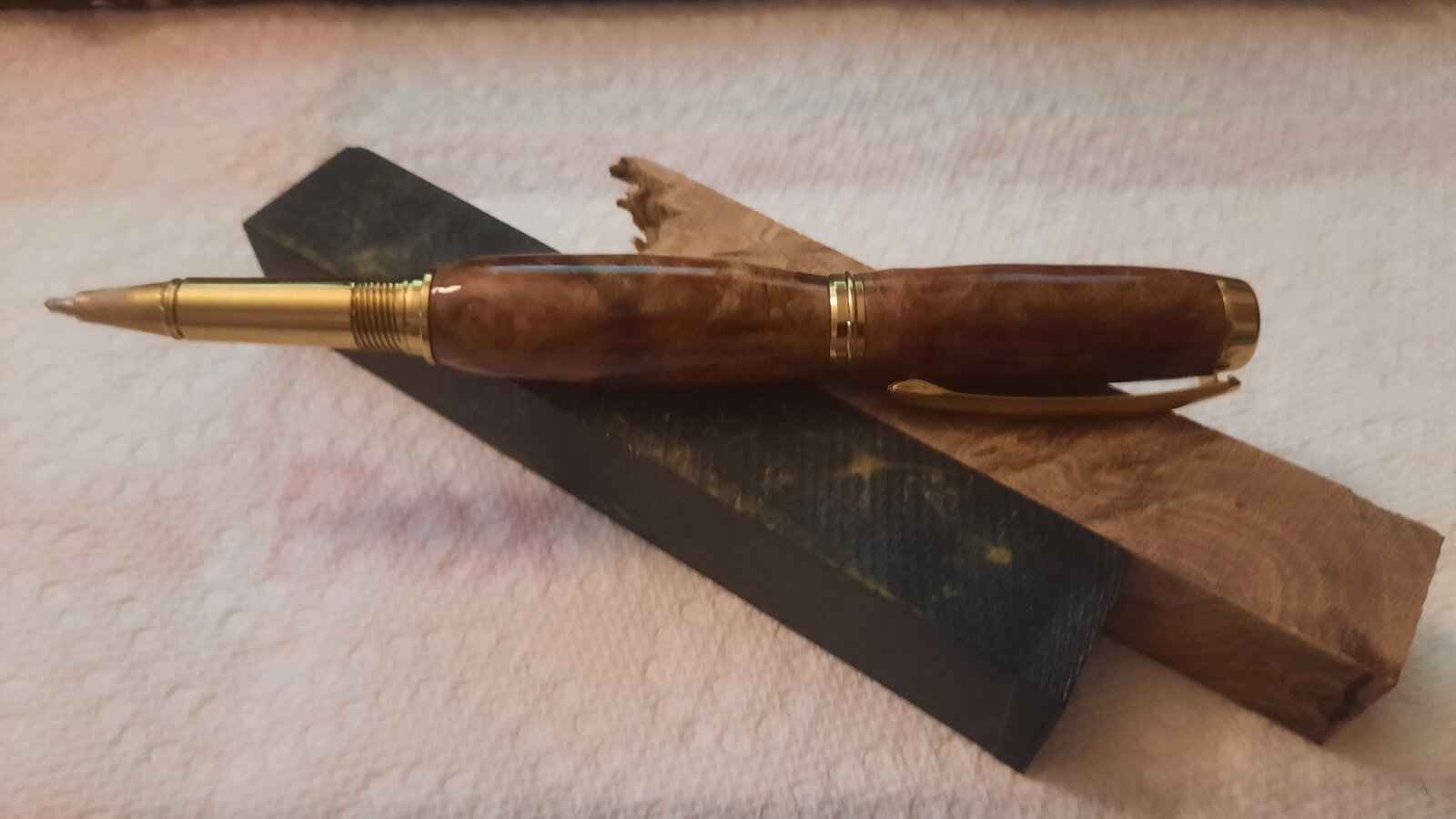 A gold Caballero frame with American Elm Burl. The blanks go with the pen and the one is one from my "shop"