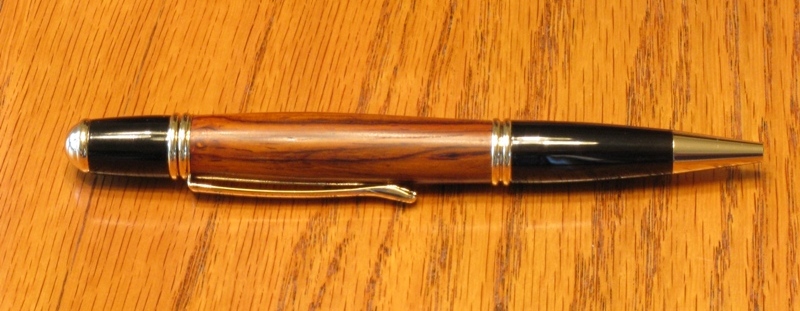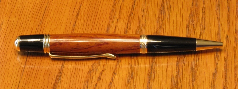 My turnings continue as pens 2, 3, 4 & 1st stopper. As several suggested I made one piece pens after my slimline start. Pens 2 & 3 are Gatsbys and pen 4 is a Wall Street. Pens 2 & 4 are cocobolo. Pen 3 & the stopper are walnut that came from door jambs that my father and I salvaged 40 years ago from a old house that was going to be torn down. I kept some scraps and finally found a use for them. the stopper is modeled after a gear shift knob. I'm having fun and have started on pens for a service pen donation. Thanks for looking.