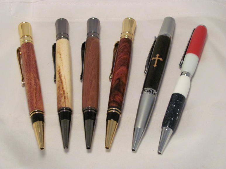 These are going in the mail Monday. The executive's are Mesquite, Hackberry and Texas Elm from Curtis, my contribution, the Cocobola executive, Irish Bog Oak with cross inlay and a red white and blue Slimline Corian.