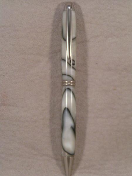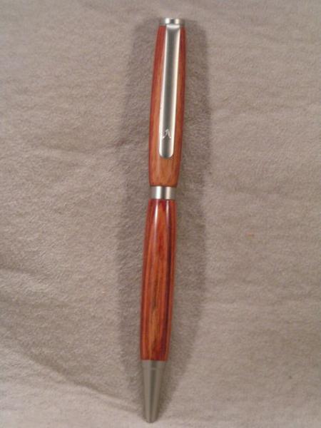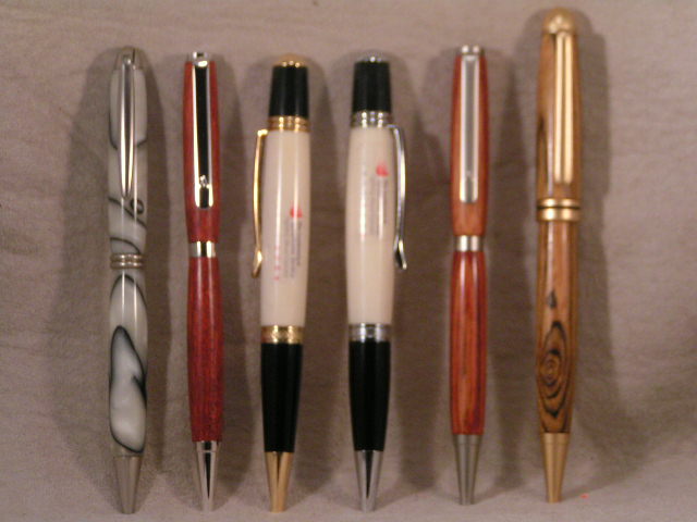 The next few are bacote on a satin gold euro, Bloodwood on Rhodium slimline, tulip wood on satin nickle, and white and black swirl acrylic on deco.