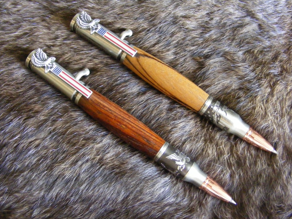 I recently held a giveaway and offered up these two pens. Had a great response on the giveaway. I love these bolt-action pens. They're a favorite for hunters and gun enthusiasts. Easy to make and assemble. For these pens, I used Zebra Wood and Cocobolo.