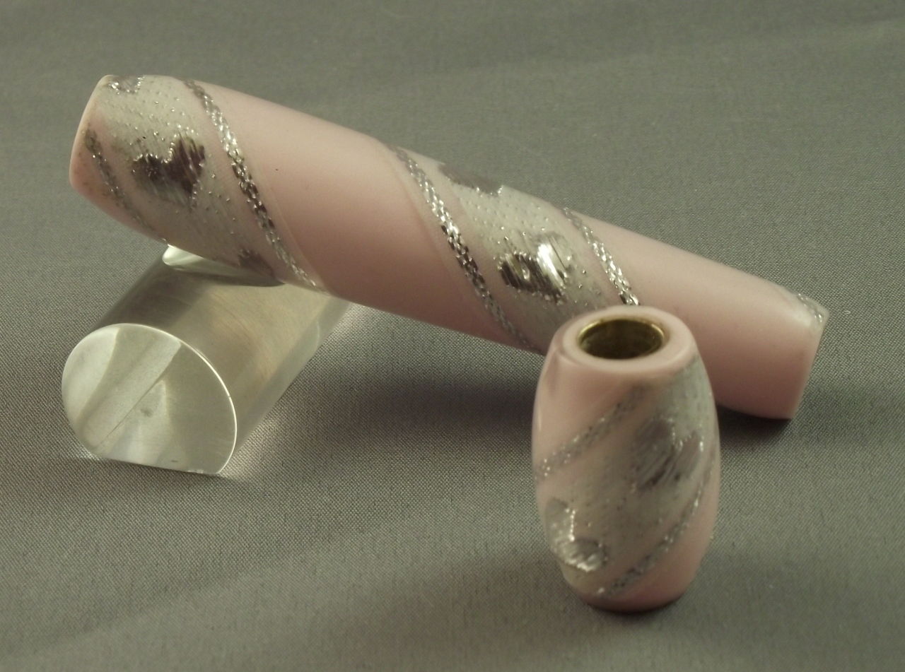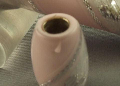 This one should have been a nice perfume pen. It's a pink polyester with a ribbon wound around it, bedded in clear PR.