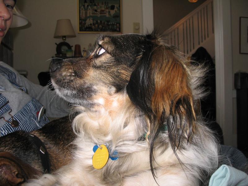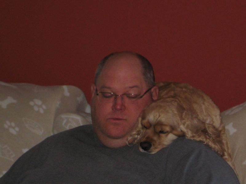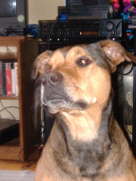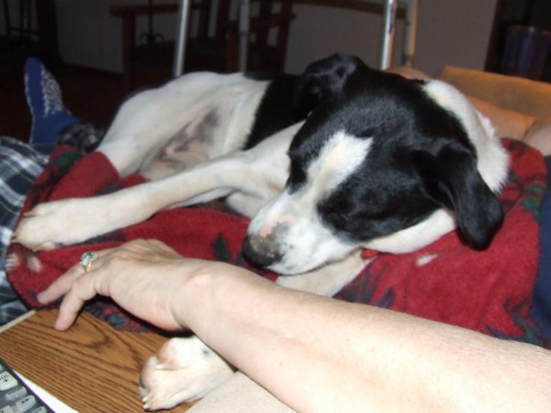 Here's the wife's dog Maggie.. she's a rescue puppy that someone dumped on the side of the road and a neighbor picked up...She's 2 now. She was very concerned about the wife when she had her hip surgery and wanted to lay in her lap.