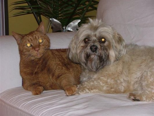 Here are our late life children "Tony" the only Italian Welsh Pembroke Corgi and Gizmo the cat that thinks it's a dog. Tony is 10 years old and Gizmo is 15
