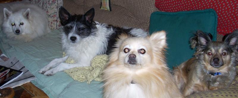 Dogs, from left to right Kodiak(spitz) Jack (terrier mix) Bear (pomeranian) and Bug (chihuahua) The cat is a rescue also and he's blind..but quite amazing and goes outside and seems to know where everything is...we are totally lucky folks to have these creatures share our lives:biggrin: