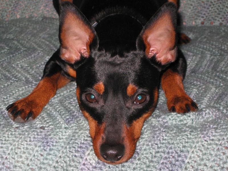 Meet our Min Pin, Farley. I'm retired, my bride is not and I spend most of my days at home alone with this guy. We have grown accustomed to each other. He is not real fond of anyone else and the feeling is mutual with most visitors.
