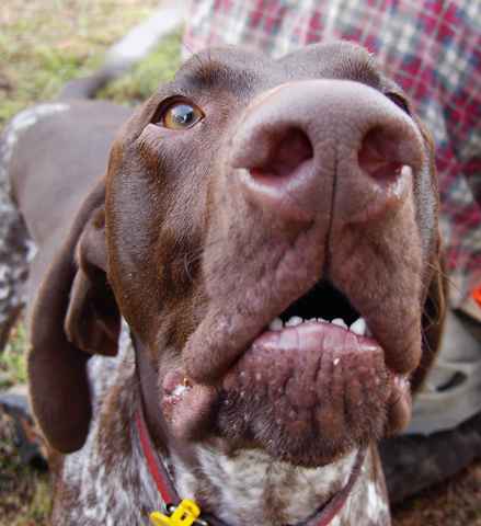 ZAC,the German short-haired Pointer male 3 years old, was given to us due to difficulty to handle him and attitude issues. This was the dog that when I was discharged from hospital, a few months back, after 3 days in troubles, he got so excited to see me that he hurt his right back leg from jumping and running around like a rocket. This was on a Friday night, took him to the Vet Monday morning and we had surgery to save his leg on Tuesday. The operation was $2.200 but it got infected a few days later with another $580 thrown in just for good measure!:eek: