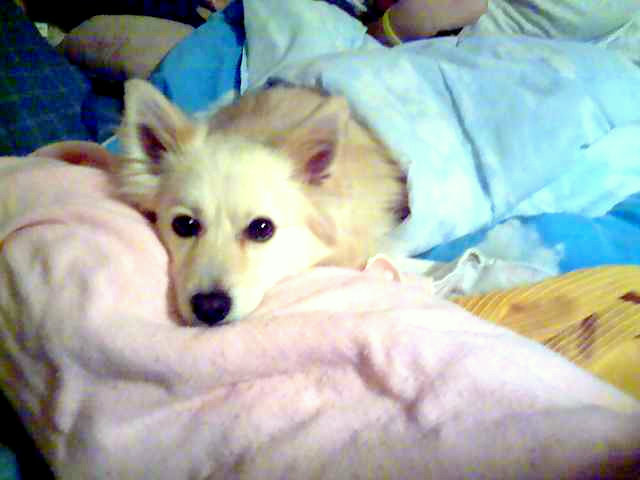Our little mooch Lucy... She isn't truely happy unless all family members are home! In the one picture you can see how little she is... She thought the doll bed we made for my daughters dolls was for her.