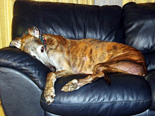 Ok, my turn. These are our 'little' babies. The two greyhounds are Kippy (10) & Bert (12) - both retired racers (yes, Bert likes his coffee on the weekends) and the cat is from a wild little that I rescued almost 14 yrs ago. Her name is Snickers and she's 22 lbs.