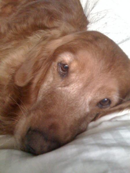Here's a shot of our golden retriever Lady, who goes to work with my wife and me every day and most everywhere in the car!