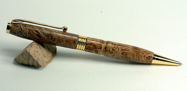 Peter, That is a gorgeous pen made from some gorgeous wood! Never quite seen a wood with figuring like that. I didn't know that you could get that highly figured timber from a limb. Learn something everyday! Peter, It's a beautiful pen! Regards, Doc
