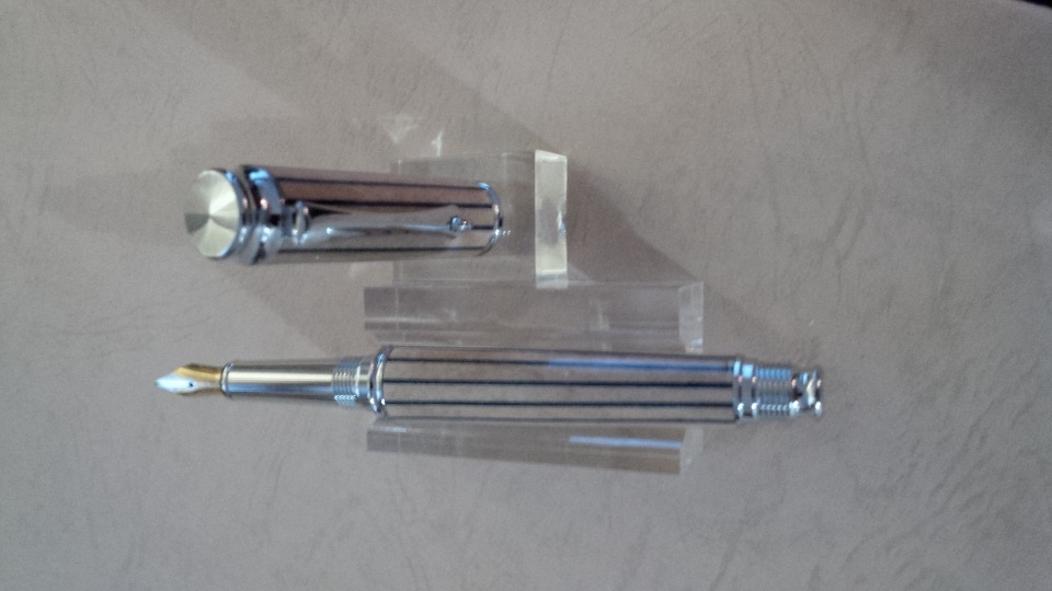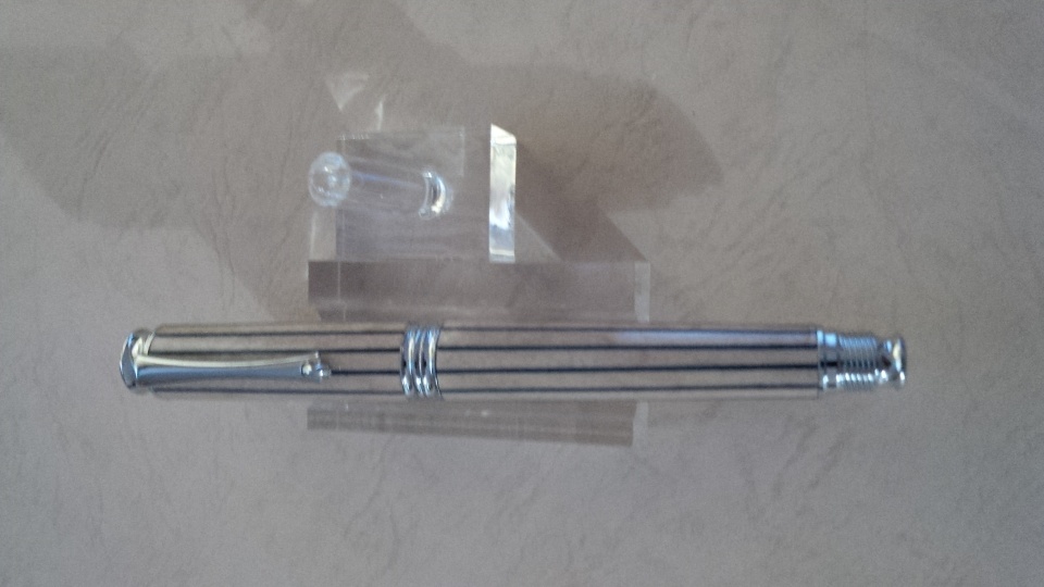 I recently had the opportunity to turn one of the gorgeous Blanks that I purchased from Branden Wong. It is a Chrome Virage Fountain Pen, finished with 5 coats of Thin CA and 5 coats of Medium CA. Thoughts and Comments more than welcome. I apologize for the pictures.