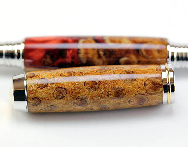 This Jr Gent is made from a pine cone blank with copper and red metalic resin. The blank is made by IAP member Vince Hoffmann. Thanks Vince, sorry it took so long to turn it. My plate is full of adventures and pen turning took a little bit of a back seat.