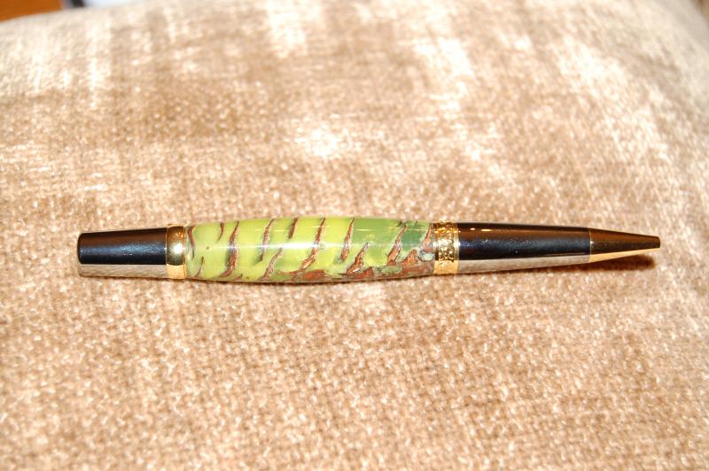 Here is a pine cone that I cast in Alumilite and gave to my wife for valentines day. I finally got it back from her briefly so that I could take a picture and post it. The pictures are not the greatest but I thought it was a pretty good cast.