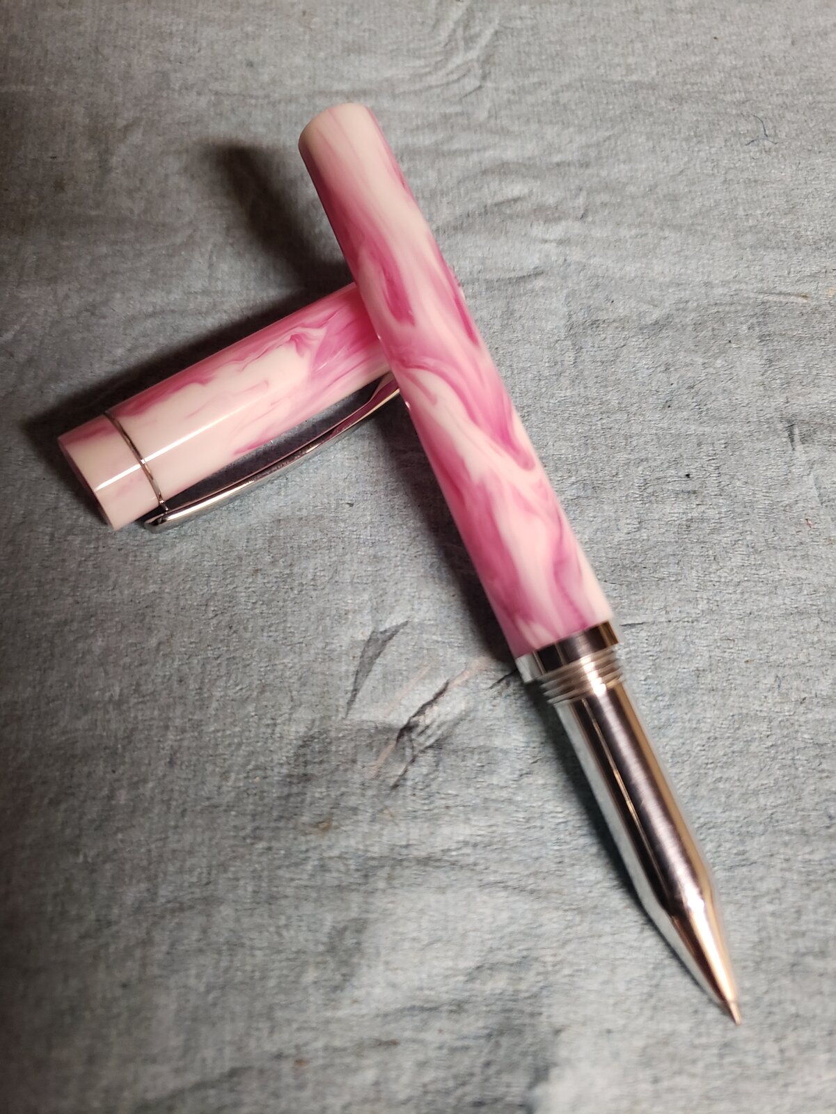 Back to some playing in the shop. It's a home cast blank with aluminum metal bits. turned the whole thing to taper from 12 mm at the bottom to 14.5 mm at the top of the cap. Next time I think I'll do more of a taper is it's more noticeable.