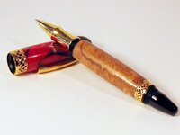 I received my pen from Hans Wunch (HeWunch) today , and I am embarrassed . I believe I got a better trade than Hans did on this one . Abeautiful brew of colors made by Hans himself , turned into a closed end with hidden clip . Hans also included some of his Delrin bushings for Cigar and Sierra pens . Thank you so much Hans ! :biggrin: