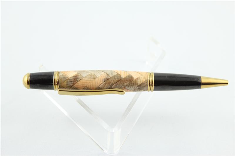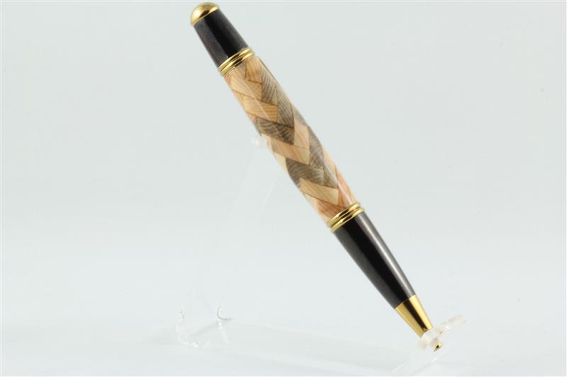 If you look at the second Pen you will see that the Blank is made up from a bunch of small pieces of wood that have been glued together forming a Haring bone pattern and that pattern goes around the pen a full 360 degrees. = HB360