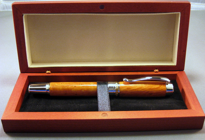 You have been priviliged to receive a cross section of really exciting blanks all of them will produce exciting pens value added they are indeed. That pen Box is beautiful. If you get out a map of Australia you could then more fully understand why I say this. First look up Mackay Queensland for the Mackay Cedar, Queensland is also the home of my allthetime favourite Hairy Oak (I just got a log from very far north Qld myself). Bimble Box Burl from various including areas of South Australia and NSW. Purple Gidgee (absolutely incredible blank there) is approaching a National Treasure timber from Qld. Figured Jarrah from Western Australia together with that piece de resistance WA Birdseye Sheoak Pen.