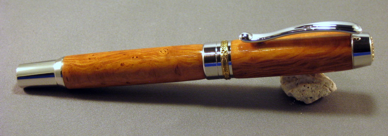 The timber in your gifted pen together with the others would turn all penmakers anywhere simply green with envy. I admire the way Troy has gone completely fulfilled in this swap to you the Birdseye Sheoak shimmers, glows outstandingly beautiful perhaps the very best example of this timber I have ever seen. The kit holds the unit together complementing the whole. It would be appropriate if you produce pens from these gifts to name Troy as the provider as I for one look forward to your making pens from them and also your reception of these timbers when you make them.