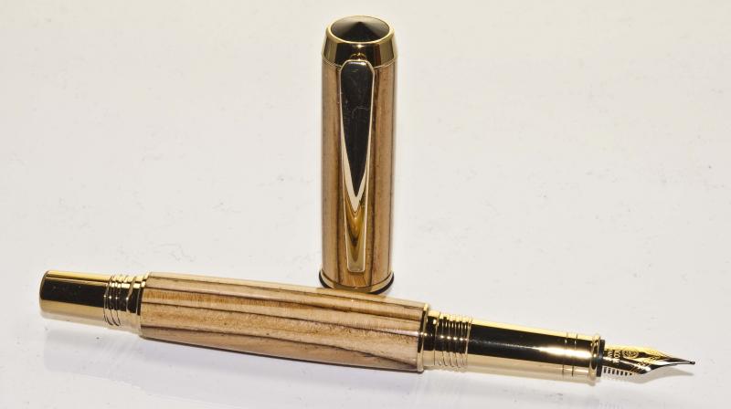 I received this beautiful fountain pen from Gary. It's made out of Laminated Veneer Lumber (LVL) made from high grade plywood veneers glued and pressed together. I'm glad Gary included a description of the wood because identifying it would have been impossible for me. Moreover, he added a bunch of blanks including the LVL blanks along with mango and crabapple blanks, the latter from a tree that grows on his property. I was having a hell of a day at work and the PITH package showing up made my day. I apologize for the pictures. I just set up a new light box and am trying to fine tune the process. Gary, Thanks so much!!! Regards, Doc