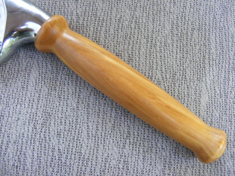 I recently made this pizza cutter from a kit I bought from Amazon (It's a Rockler Kit) Handle is made of olive wood. I turned the handle and the kit comes with an insert that's screwed into the blank. The cutter has a stainless steel blade and the quality seems to be good.