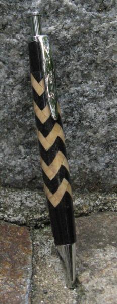 I have been playing with this blank for too long and had to use it. It is a Danish Bog Oak and English Holme Oak with a bit of Ebony at the ends. the picture does not do much for it but it is decent looking in person. the kit is a Platinum longclick and the finish is 8 coats of CA micromeshed to 12000, buffed out for fun and then some Renwax. This blank blew up twice onme and I'm glad that I was able to do something with it.